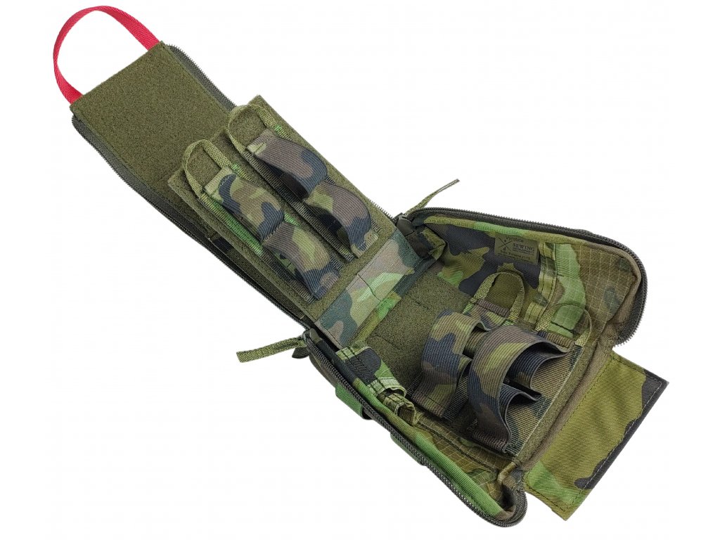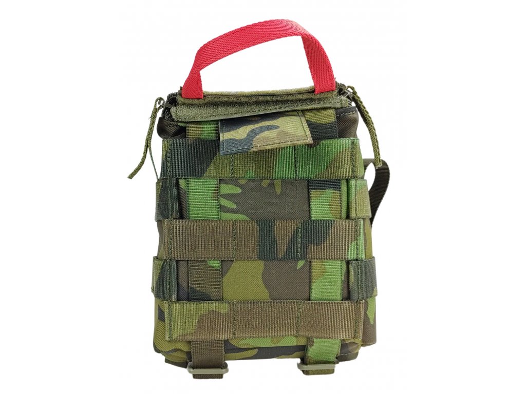 - Lékárnička je navržena pro rychlý přístup k obsahu s možností uchycení k nosného systému univerzální vazby MOLLE.
