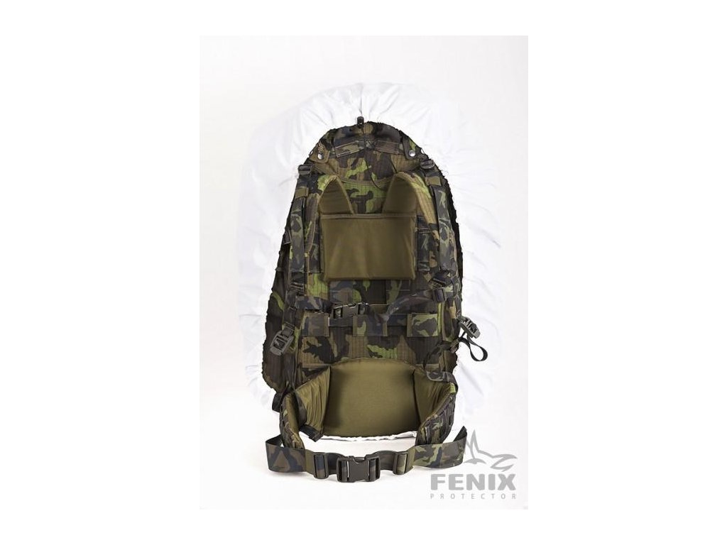 - Všestranný maskovací potah / převlek kamuflážní sněžný / bílý obal na batohy o objemu do 60 litrů.