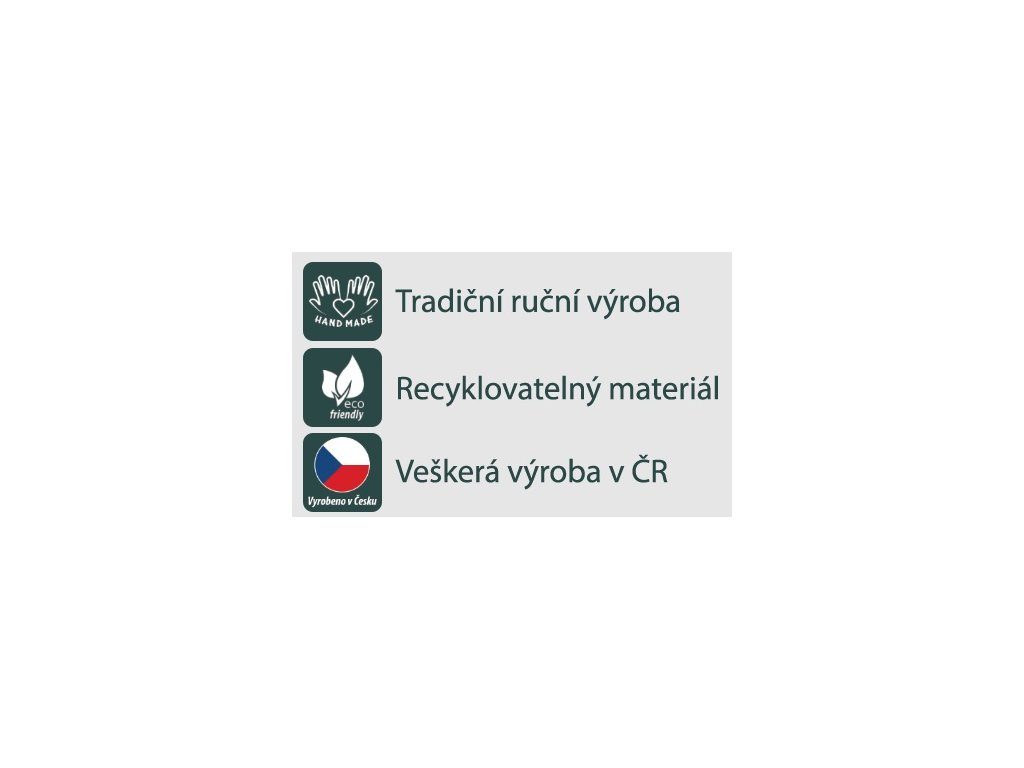 - Vyrobeno v ČR z prvotřídních materiálů s vysokou kvalitou ručního zpracování.