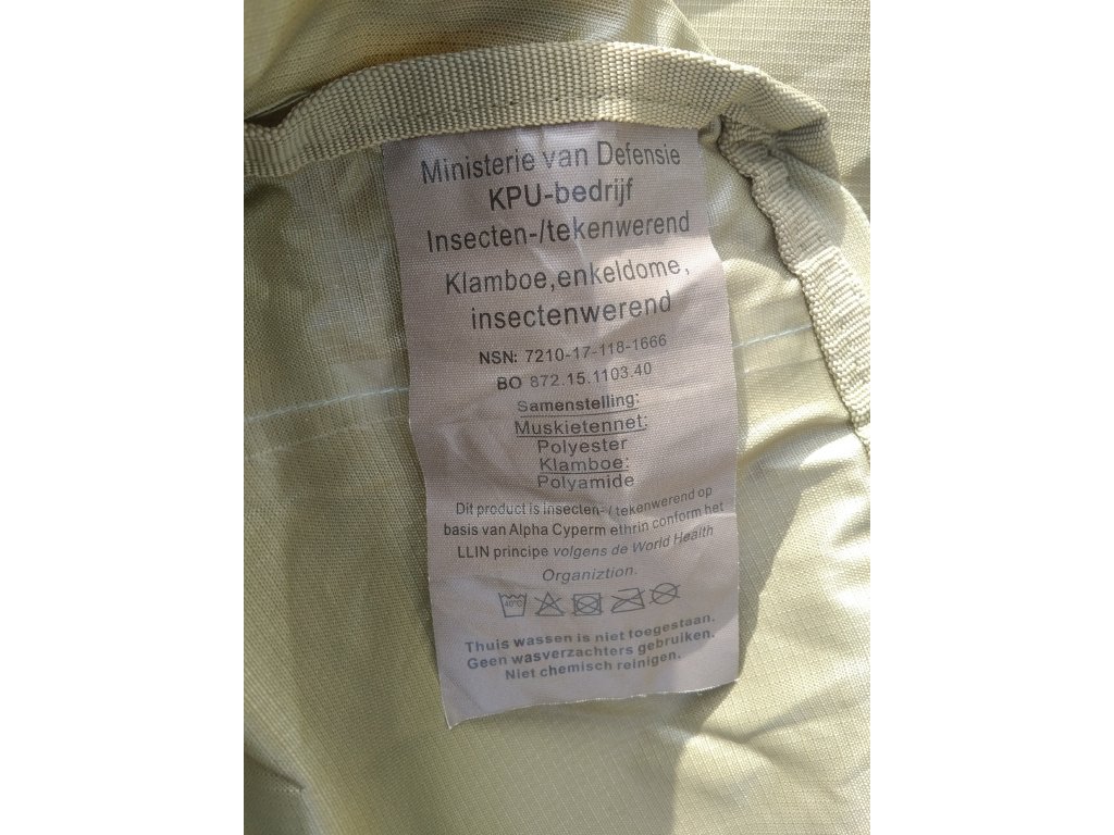 - Stanová moskytiéra pro jednu osobu z výstroje ozbrojených sil Královské armády Nizozemska/Holandska.