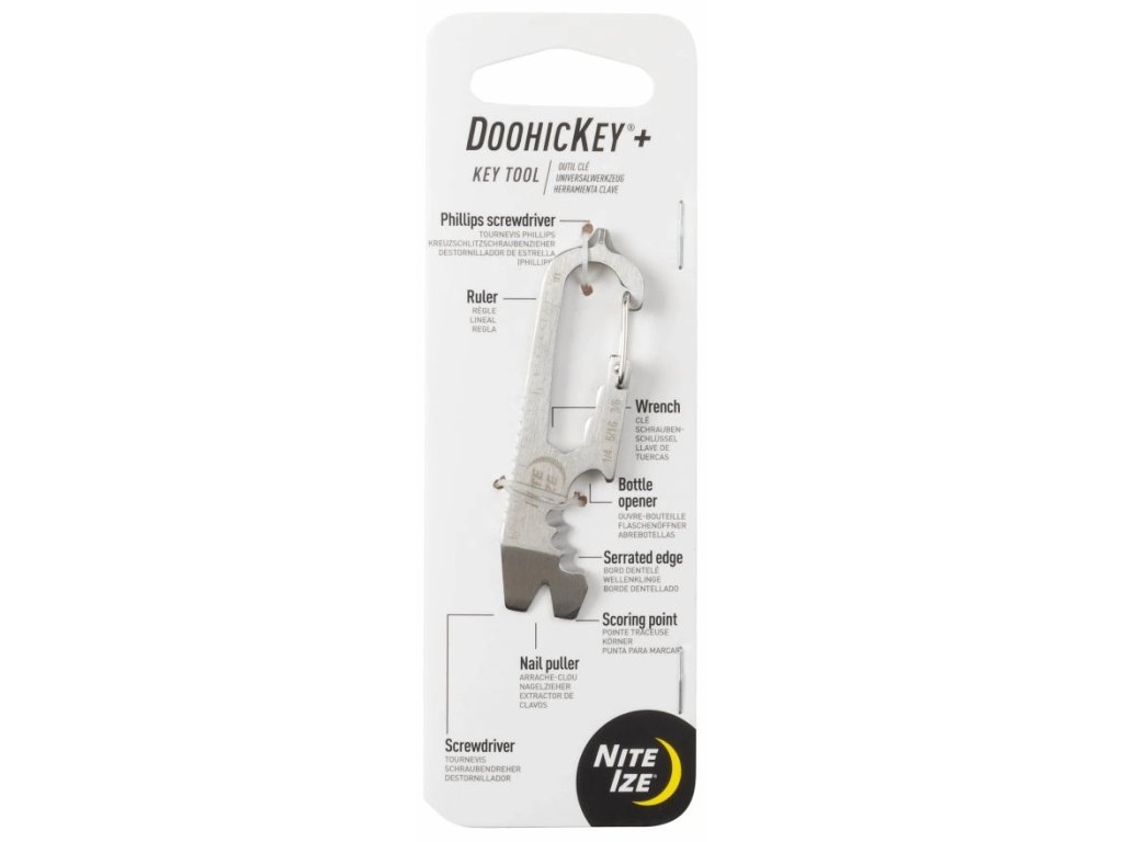 Karabinka Nite Ize DoohicKey je multifunkční nástroj, ideální jako klíčenka nebo na větší zip. DoohicKey je vyroben z odolné nerezové oceli, a kromě funkce karabiny má dalších pět možností využití. Navíc je vyroben v souladu s pravidly Úřadu pro bezpečnost v dopravě USA (Transportation Security Administration - TSA) a můžete ho proto mít u sebe všude, kde je potřeba. A to je přesně to co od multifunkčního nástroje potřebujete.