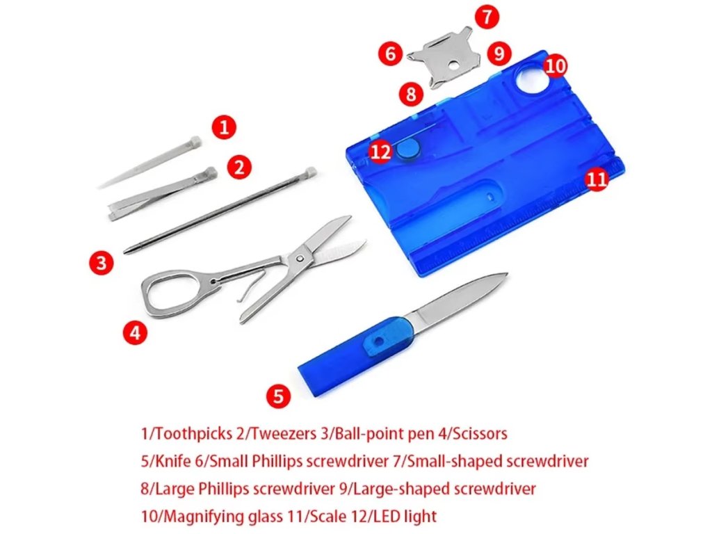 Multifunkční karta na přežití modrá 12v1 Eurobatt® MultiTool Card Red