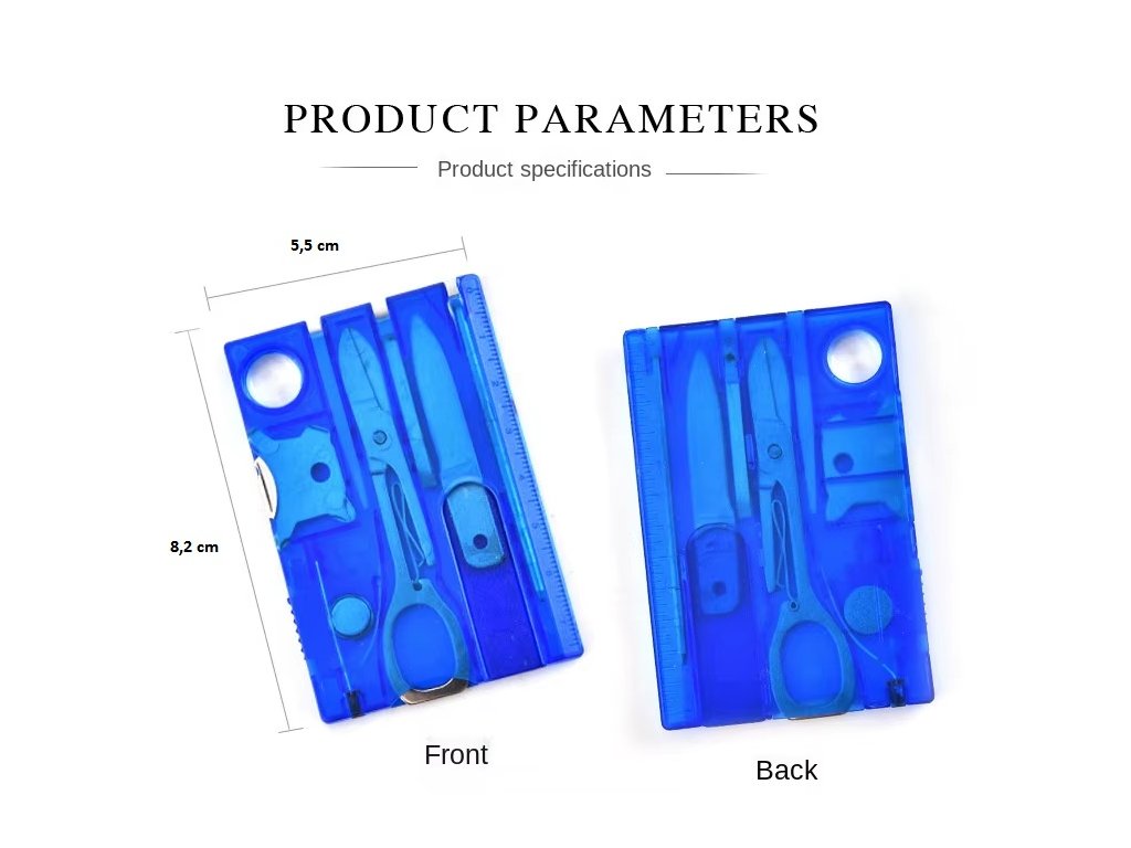 Multifunkční karta na přežití modrá 12v1 Eurobatt® MultiTool Card. Vynikající pomocník pro každou příležitost.Vzhledem k malé velikosti a nízké hmotnosti vhodný pro každodenní nošení, třeba v peněžence nebo jako přívěšek na klíče. Přestože je karta s nástroji vytvořena v rozměrech kreditní karty, spojuje v sobě několik užitečných funkcí. Perfektní na turistiku a cestování. Inspirována osvědčenou kartou švýcarského výrobce VICTORINOX Swiss Card. Certifikovaný produkt polské značky Eurobatt®.
