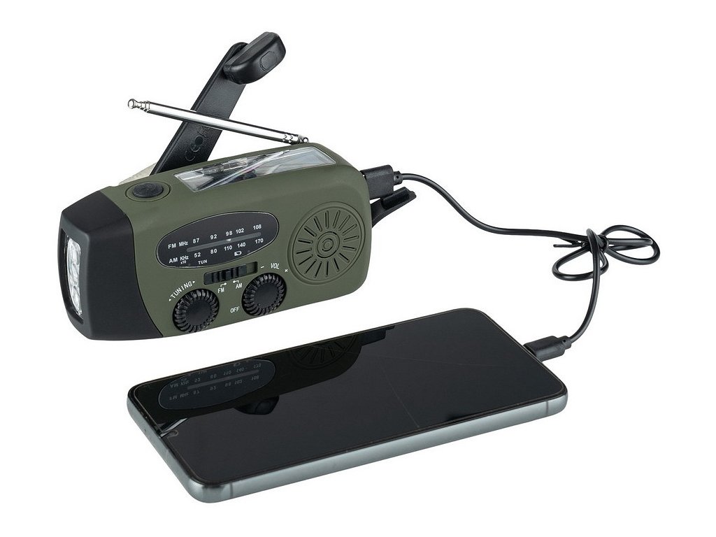 Multifunkční rádiová svítilna s nabíječkou na kliku Emergency Solar Crank Radio Fosco™