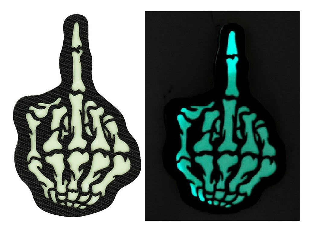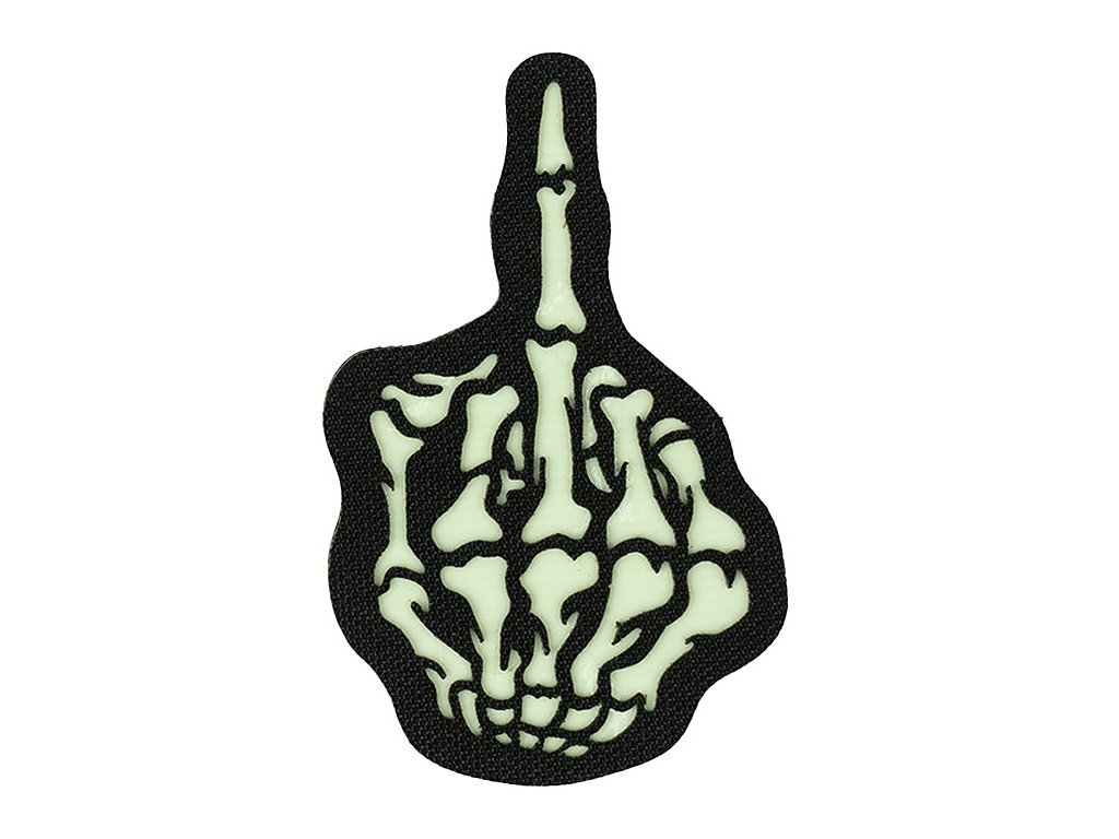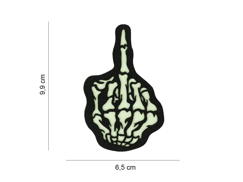 Laserově řezaná VELCRO nášivka na suchý zip - Prostředníček kostlivce svítící ve tmě 101. INC