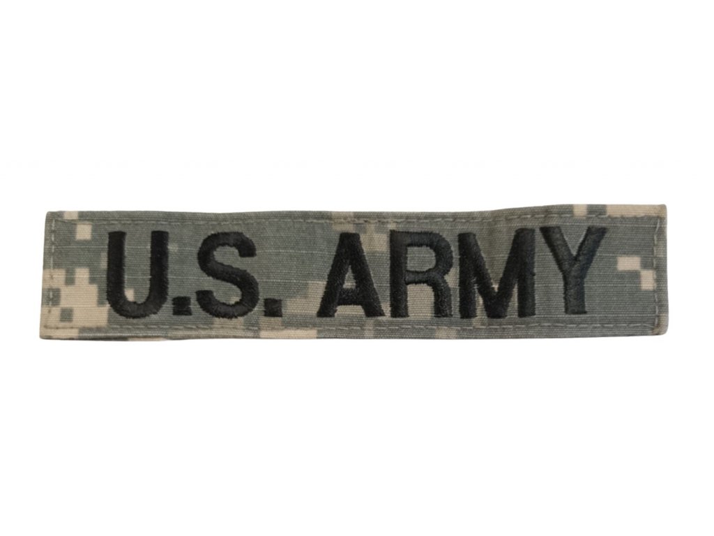 - Precisně vyšívaný text U.S. ARMY černou nití na podkladu digitální kamufláže.