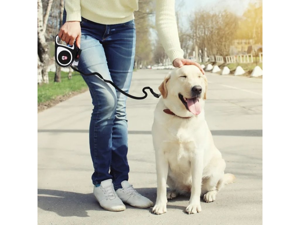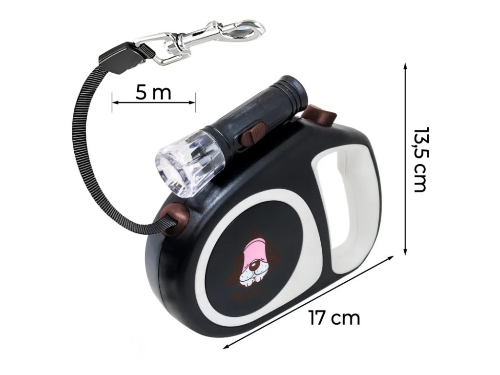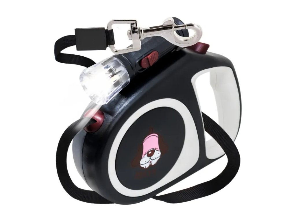 - Automatická šňůrka na psa / flexi vodítko 5 m se zámkem, LED svítilna/baterka.