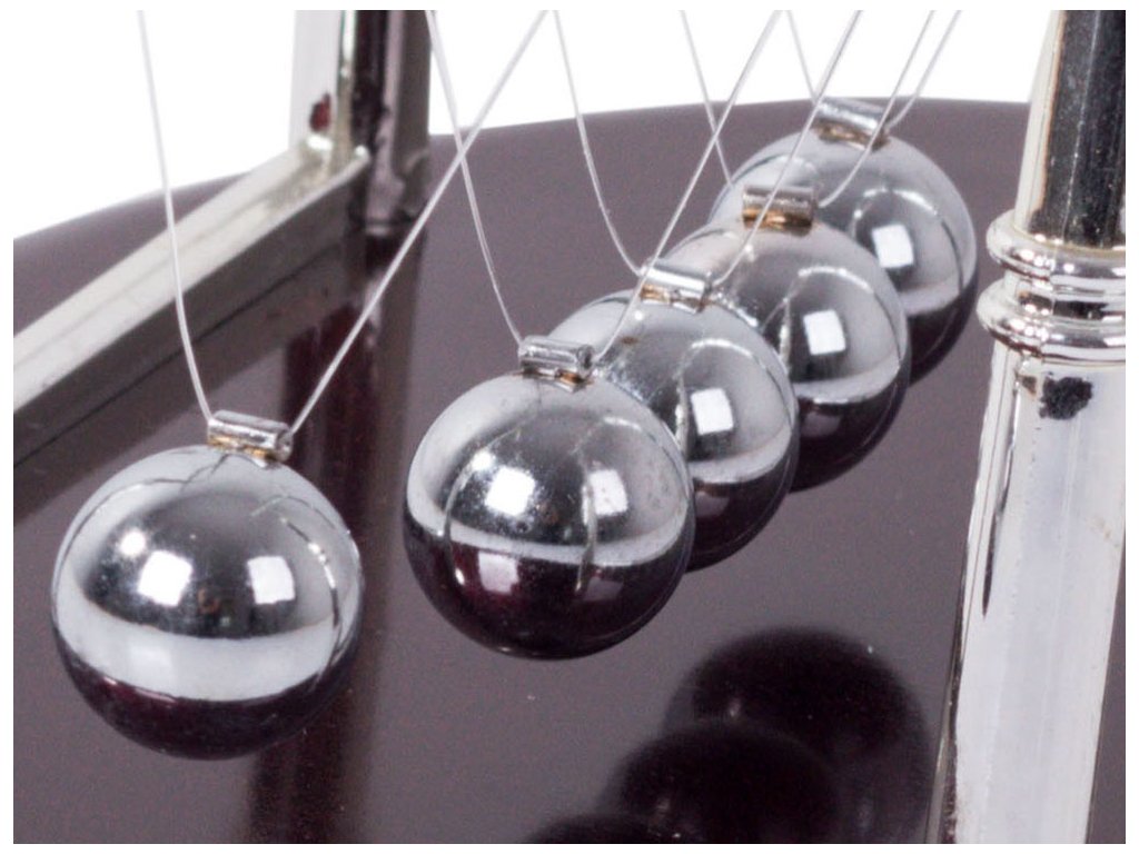 Newtonova kolébka (také známá jako Newtonovo kyvadlo) se používá k demonstraci principů zachování hybnosti a energie.
