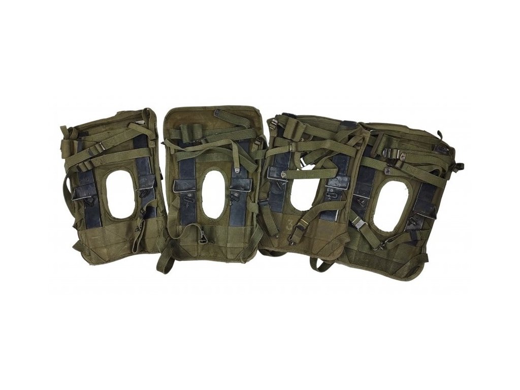 - Použité zboží (nosiče nesou stopy běžného opotřebení, lehké znečištění a oděrky, mírné deformace kovového hardwaru, vyřazené z armádních zásob).