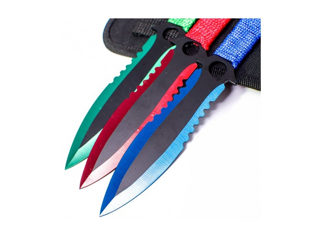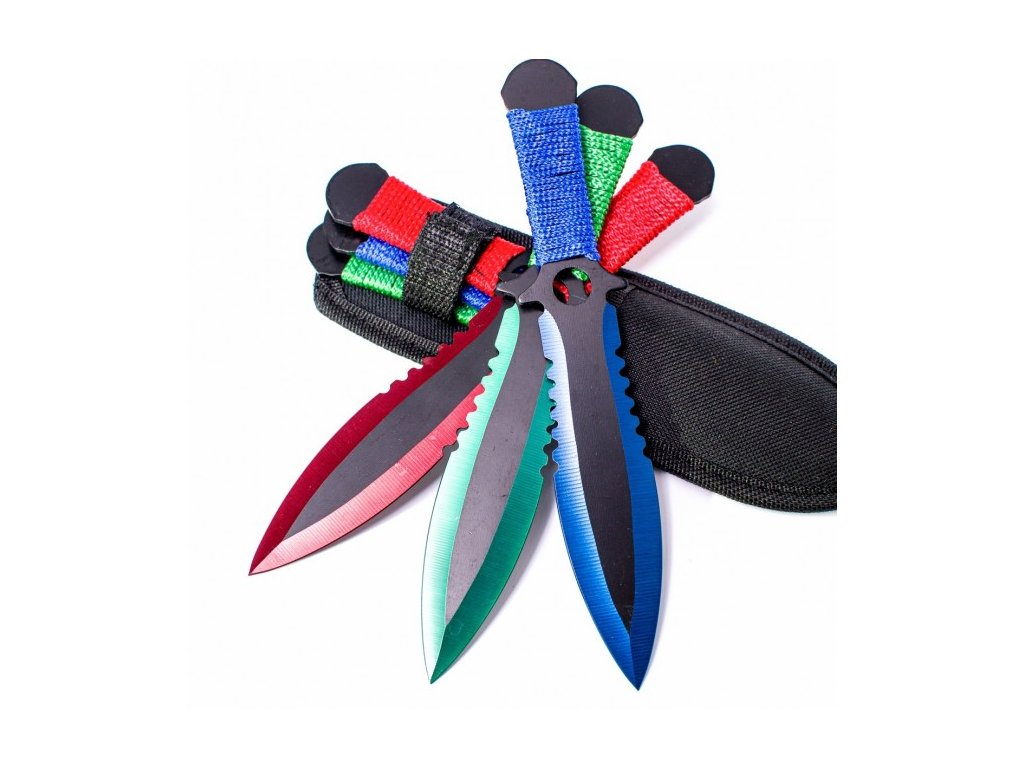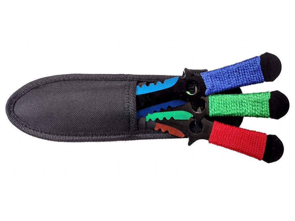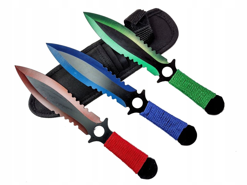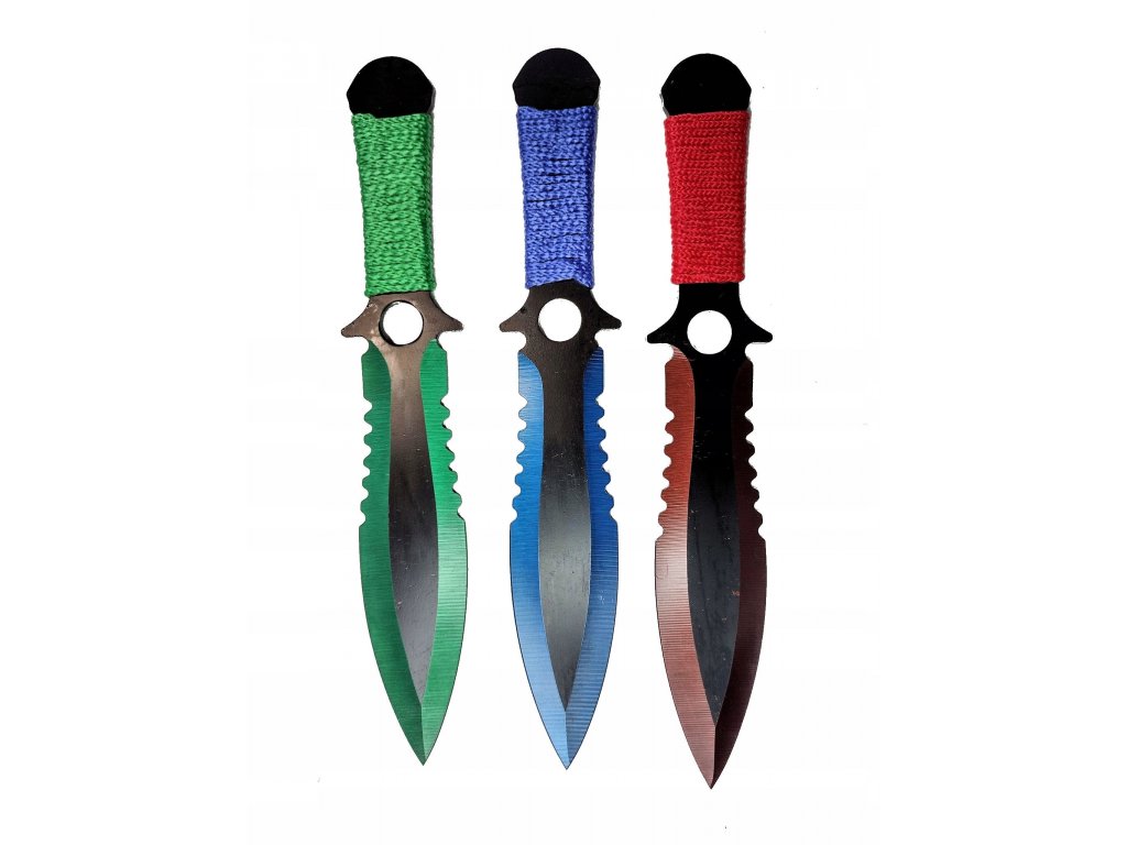 Sada tří nožů vyrobených z vysoce kvalitní nerezové oceli pro vrhání. Každý z nožů v sadě se vyznačuje velmi dobrým zpracováním a dokonalým vyvážením.Sada je ideální pro lidi, kteří hledají profesionální šipky pro pravidelný trénink. Váha jednotlivých nožů byla zvolena tak, aby trénink byl uspokojivý, ale ne únavný.