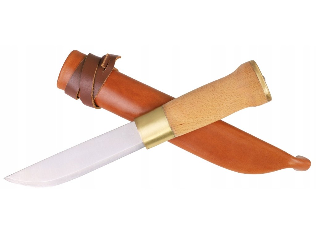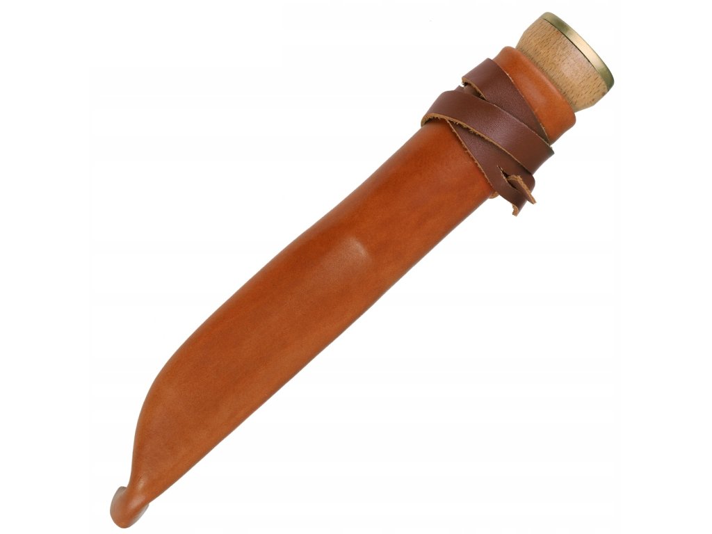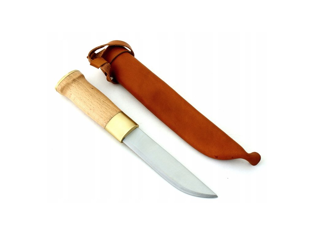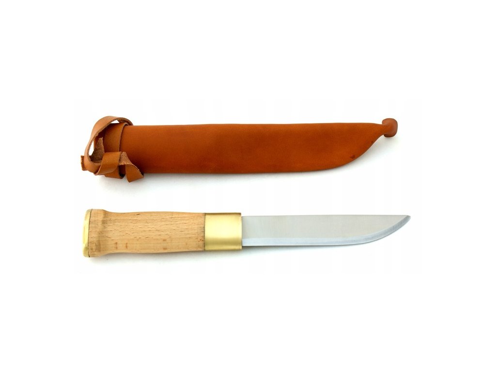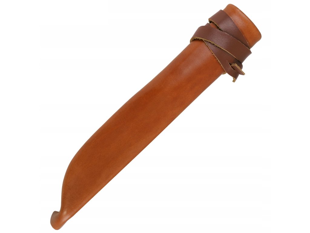 Legendární finský lehký nůž s pevnou čepelí. Menší provedení o celkové délce 24 cm. V ceně kožené pouzdro s koženou šňůrkou která umožňuje připevnění nože k čemu si vzpomenete, a nebo omotáním slouží k fixaci nože v pouzdře, zamezení tak vyndání nože s pouzdra, když ho nosíte třeba uvnitř batohu.