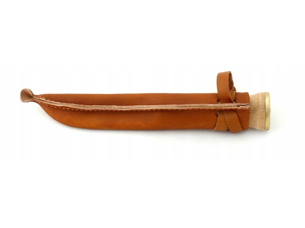 Finský nůž, vyrobený z rychlořezné uhlíkové oceli, představuje tradiční severský styl. Jedná se o model Leuku (Samikniv), který používá sámský lid, podobný kompaktním nožům Puukko, ale mnohem větší.