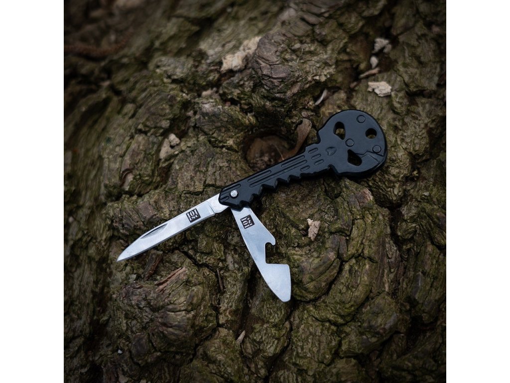 - Přívěšek ve tvaru klíče s designem lebky (nůž/nástroj ve tvaru klíče nebo klíčový nůž).