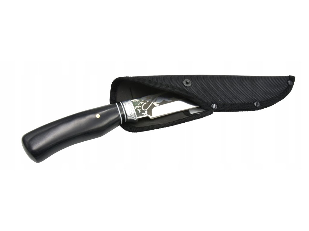 - Hodnotný outdoor nůž s reliéfem loveckého charakteru.