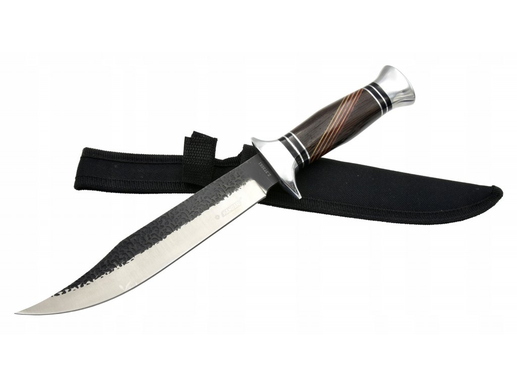 Tento velký lovecký nůž má úhlednou kónickou čepel 440C, nabroušenou do ostré hrany. Rukojeť je vyrobena z kombinovaného dřeva s kovovým zdobením. Základní kryt a chránič palce jsou do detailu propracované s designem vysokého lesku. Skvěle vypadající nůž do každé sbírky.