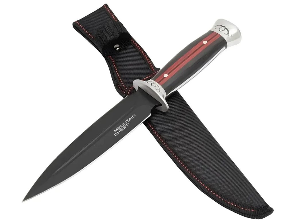 Lovecký nůž s oboustrannou čepelí Mountain Ghost® 30 cm bajonetová dýka s opaskovým pouzdrem
