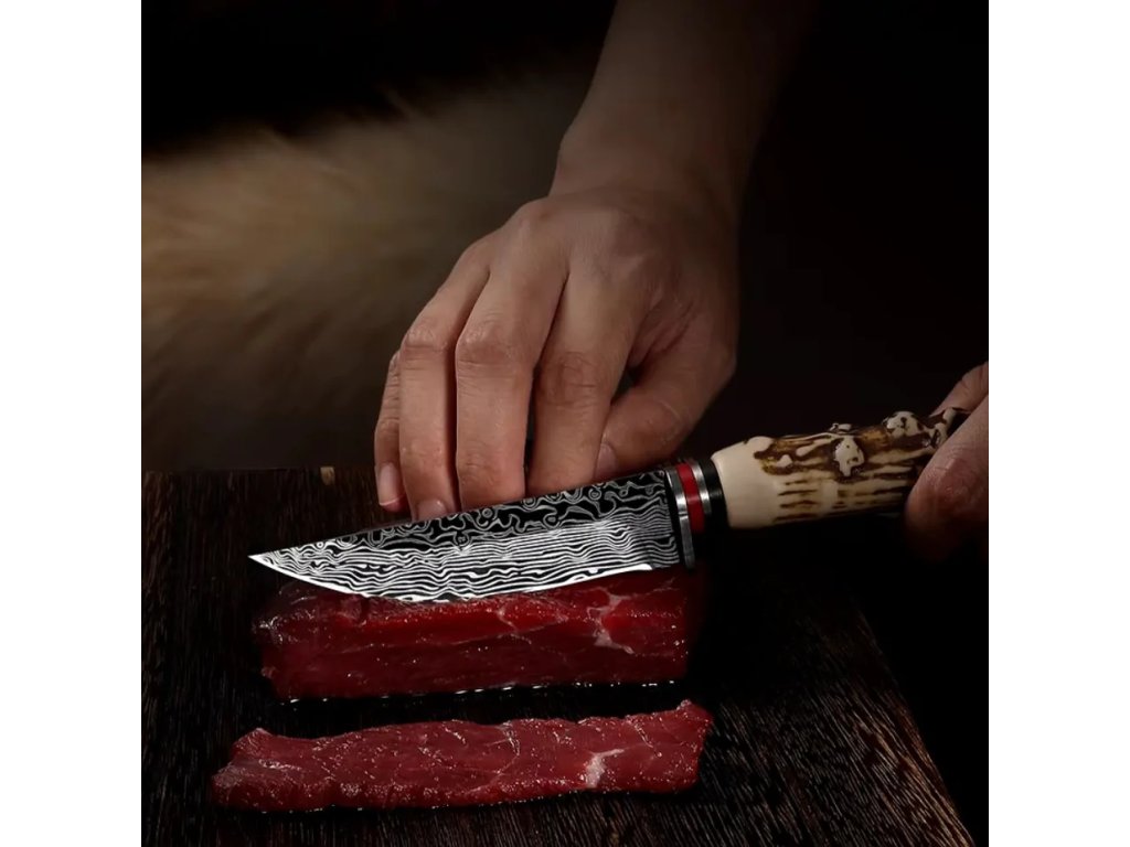 Rukojeť je vyrobena tak, aby připomínala parohy divoké zvěře, perfektně padne do ruky.