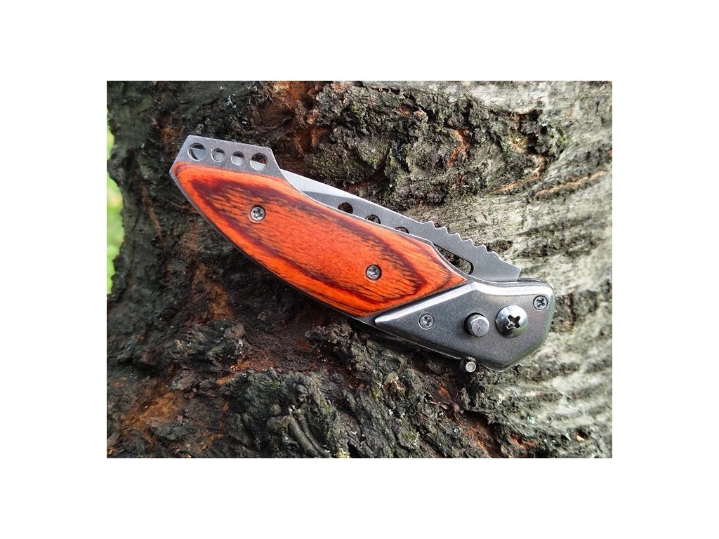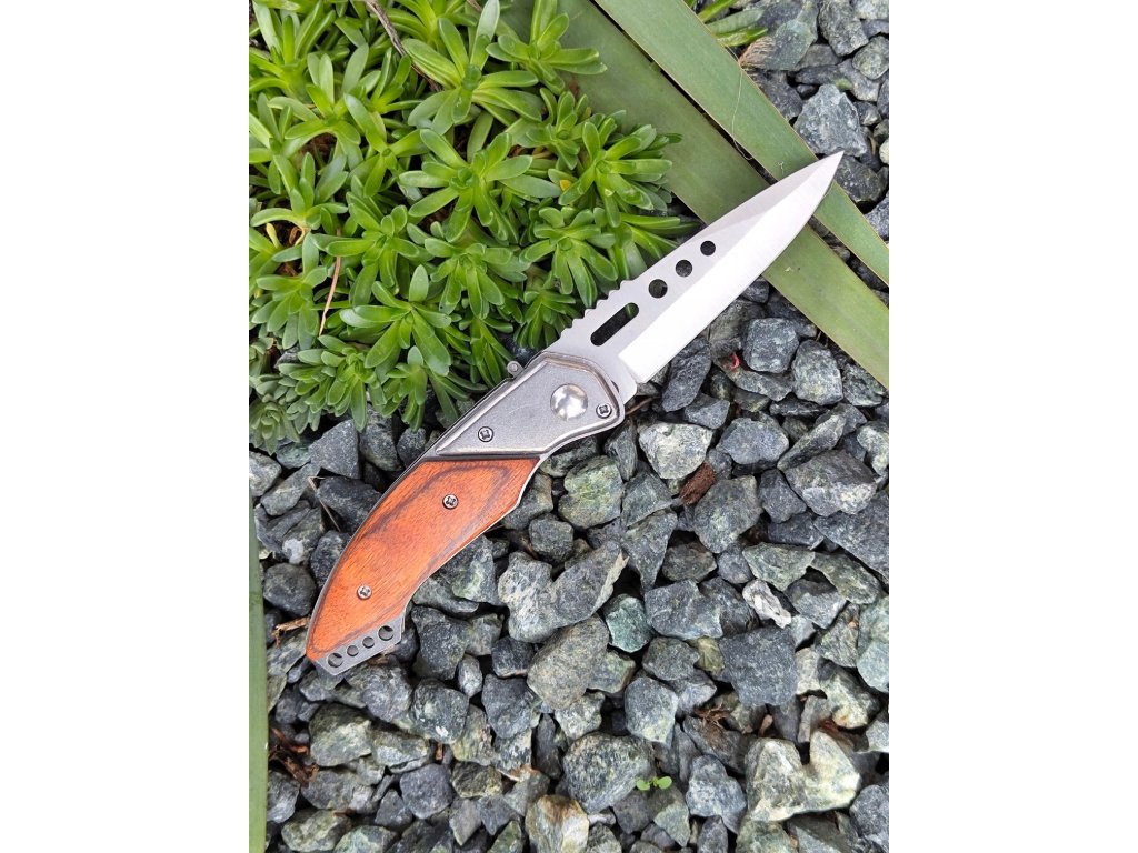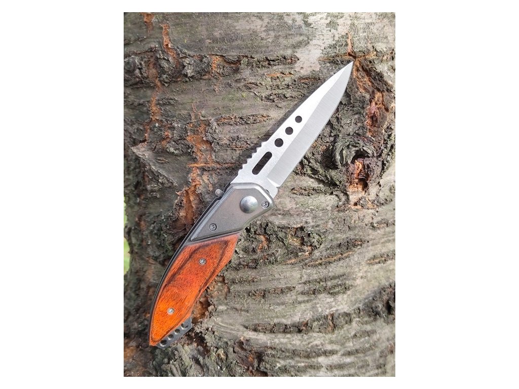 - Kapesní vystřelovací (automatický / pružinový) nůž s dřevěnou rukojetí.