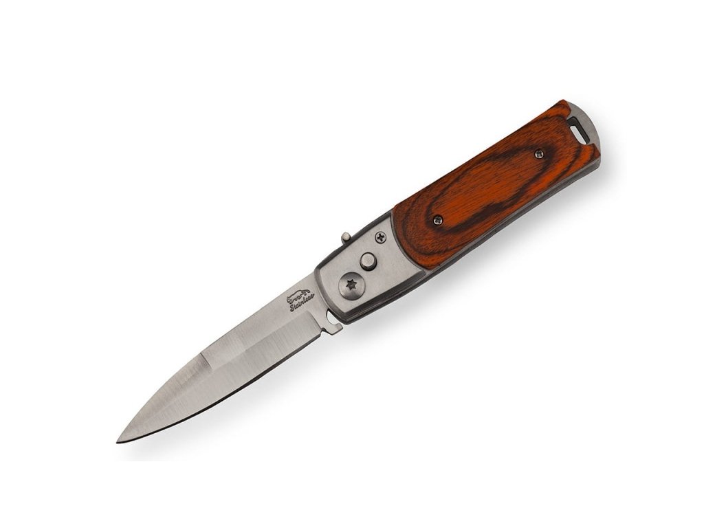 - Kapesní vystřelovací (automatický / pružinový) nůž s dřevěnou rukojetí.