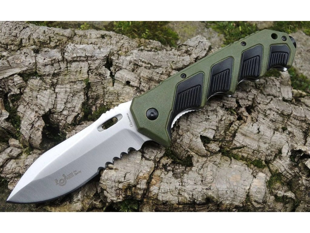 Jde o "poloautomatický" nůž, který se otevírá pouze "flipperem" umístěným ve složené poloze nad zadní částí rukojeti. Jeden pohyb ukazováčkem a nůž je připraven k použití. Rukojeť je z odolného plastu ABS zelené barvy s černými gumovými doplňky pro dokonalý úchop, konec rukojeti má navíc malé kladivo. Nechybí ani ocelová spona pro fixaci nože na horní hraně kapsy kalhot, nebo k nošení na libovolném opasku.