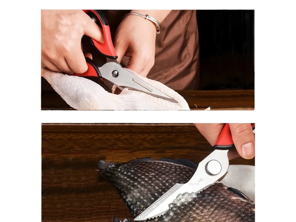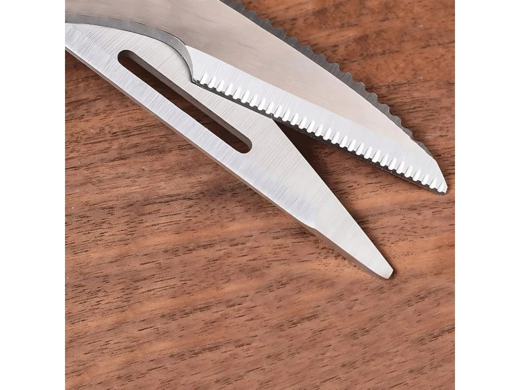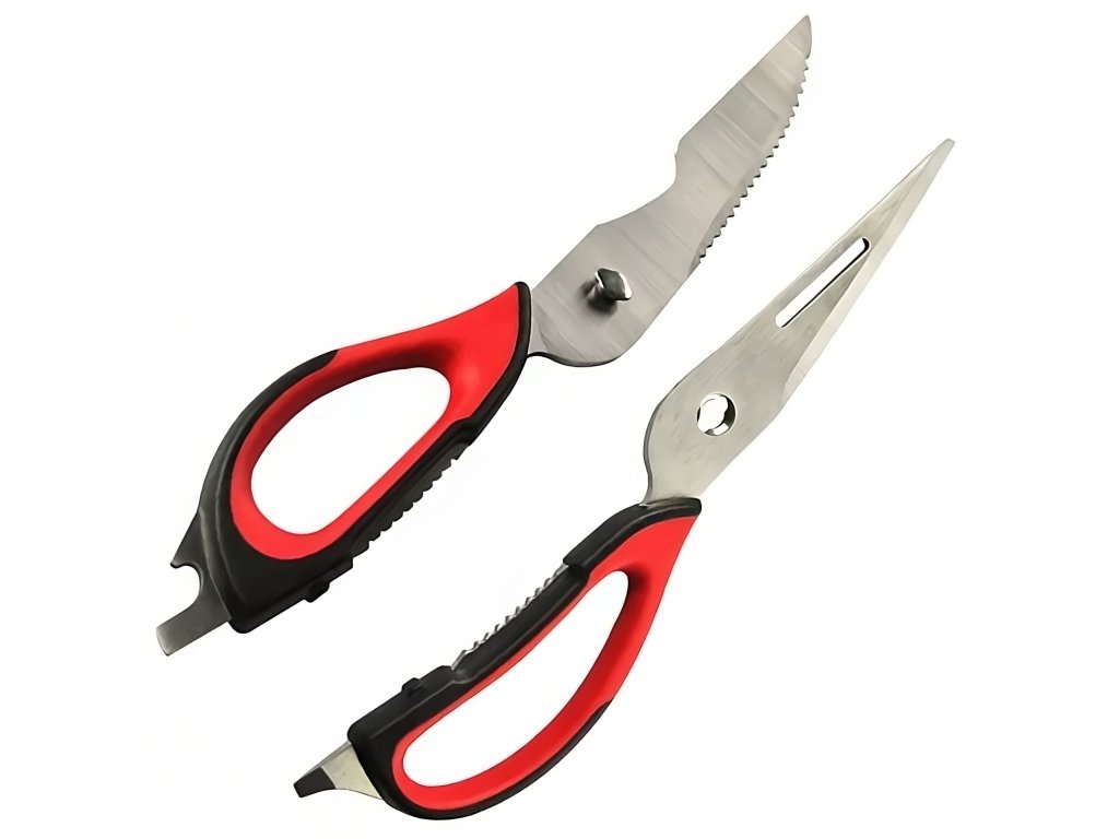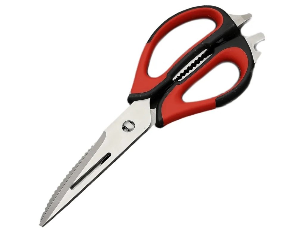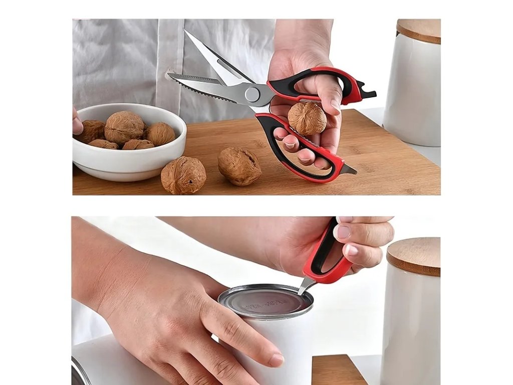 Multifunkční nůžky jsou vynikajícím nástrojem pro amatérské i profesionální kuchaře. Díky své funkčnosti jsou cenným doplňkem vaší domácnosti. Mají protiskluzové rukojeti, které zajišťují, že vám při krájení nevyklouznou z ruky. Lze je použít ke krájení masa, ovoce a zeleniny, otevírání lahví nebo konzerv, šupování ryb a louskání ořechů.