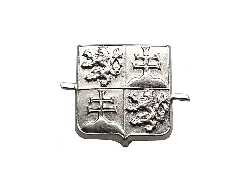 - Odznak zobrazuje čtvrcený štít se znaky Čech (lev) a Slovenska (dvojitý kříž).
