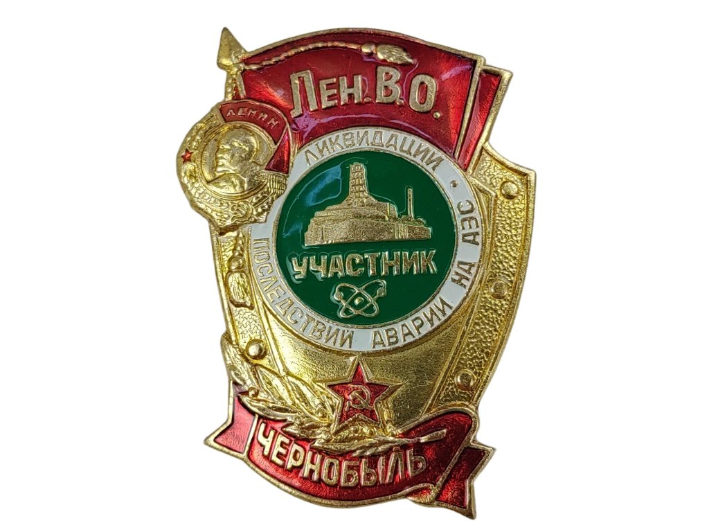 Odznak udělovaný lidem, kteří se přímo podíleli na odstraňování následků katastrofy v jaderné elektrárně v Černobylu, distribuovaný ještě před rozpadem Sovětského svazu.