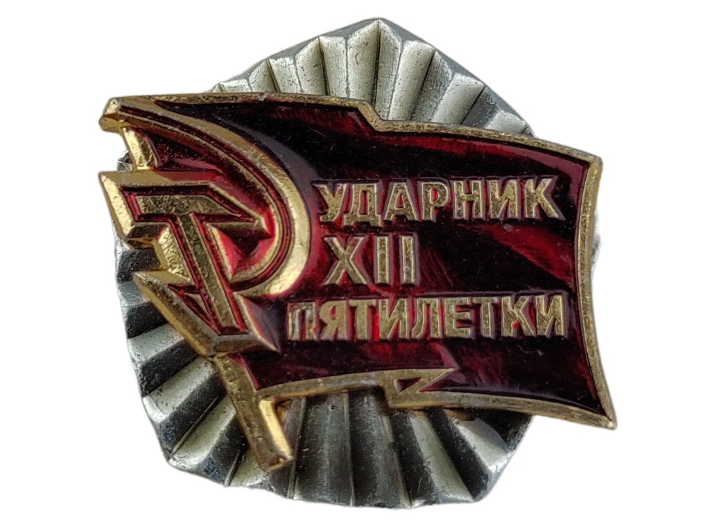 Úderník XII. pětiletky (УДАРНИК ХII ПЯТИЛЕТКИ / UDARNIK KHII PYATILETKI).