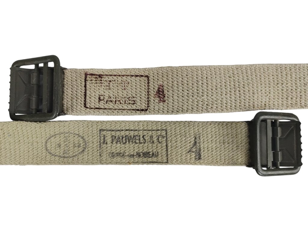Originální khaki kalhotové opasky francouzské armády. Vyrobeny z těžkého plátěného popruhu s nastavitelnou třecí sponou. Tyto opasky byly kopírovány z kalhotových opasku americké armády z druhé světové války (WWII.), který původně dostali Francouzi.