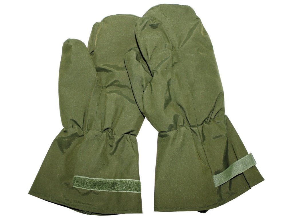 Britské zelené palčáky do extrémně chladného počasí (Extreme Cold Weather - ECW). Určené k nošení přes polstrované rukavice nebo silné vlněné palčáky. Jsou velmi prostorné, protože se jedná o vnější palčáky. Voděodolný a prodyšný materiál MVP (Moisture Vapor Permeable). Elastické zápěstí a stahování na páskem na suchý zip pro dokonalé padnutí. Měkká podšívka z vnitřní strany rukavic mimo prostoru pro ukazováček. Skládací design, aby se daly v případě potřeby uložit do kapsy.