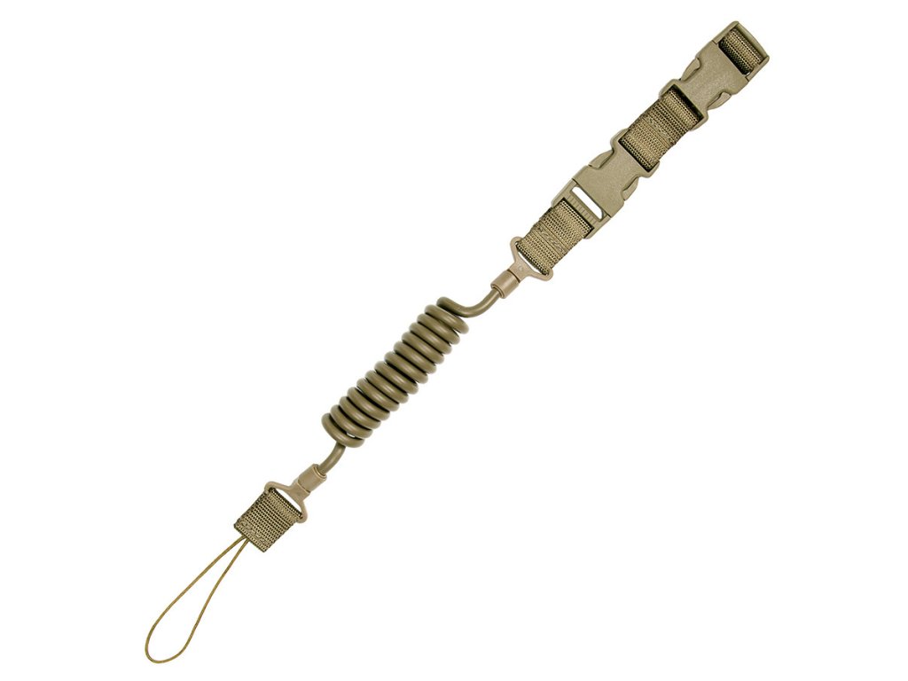 Bezpečnostní kroucený kabel (telefonní kabel) k zajištění pistole. Nylonový popruh se dvěma rychlosponami umožňuje přichycení k opasku nebo upínací vazbě systému MOLLE.