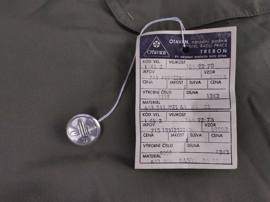 - Zánovní stav (kabáty jsou nepoužité v zachovalém stavu, mohou nést stopy dlouhodobého skladování, vyřazené z armádních zásob).