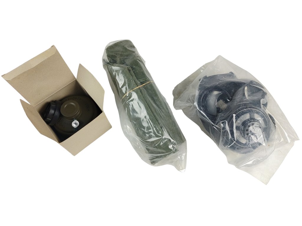 - Zánovní stav (plynové masky, filtry a brašny jsou nepoužité v původním balení, některé díly mohou vykazovat stopy dlouhodobého skladování, vyřazené z armádních zásob).