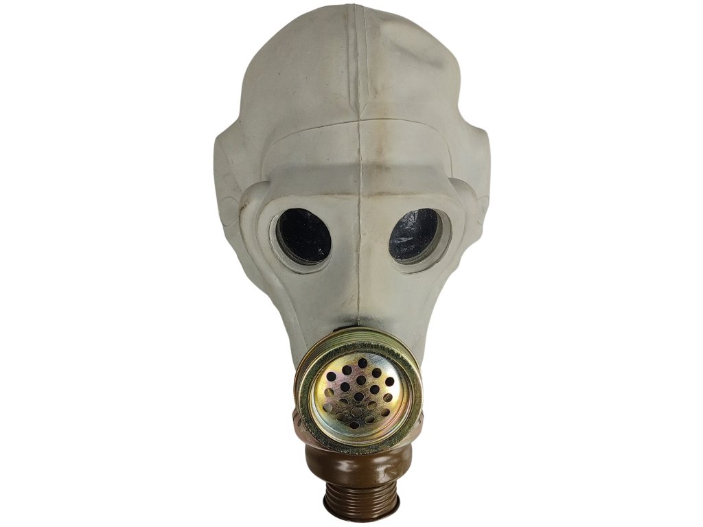 Sovětská nebo také ruská protiplynová maska model "ShMS" přilbového typu, která se natahuje zcela přes hlavu.