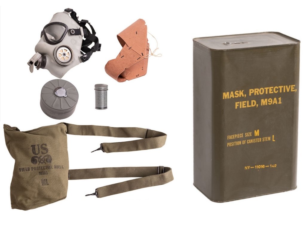 - Balena v původní plechové krabici s nápisem "MASK, PROTECTIVE FIELD, M9A1".