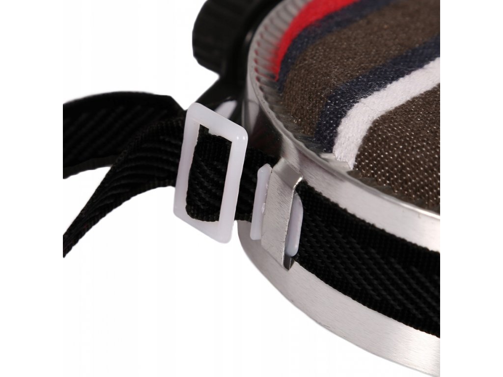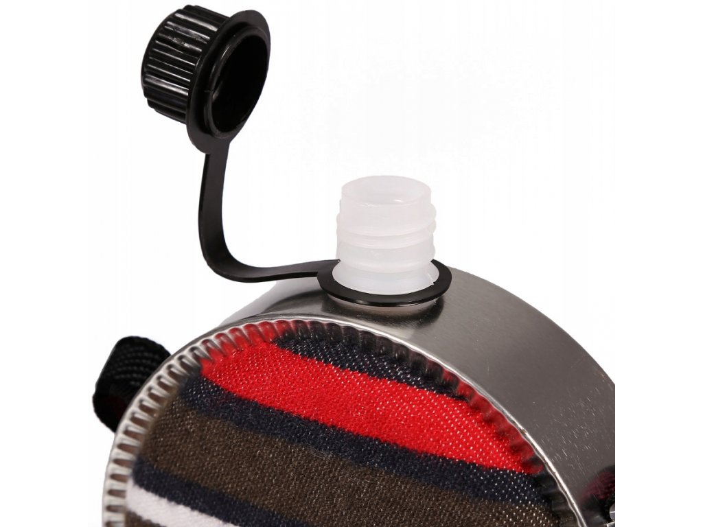 Na bocích nádobí je materiál připomínající pruhovanou deku, díky kterému má manýrka originální westernový vzhled. Tento filc plní také izolační funkci. Teplý nápoj přenášený v manýře se tak bude pomaleji ochlazovat a studený pomaleji ohřívat.