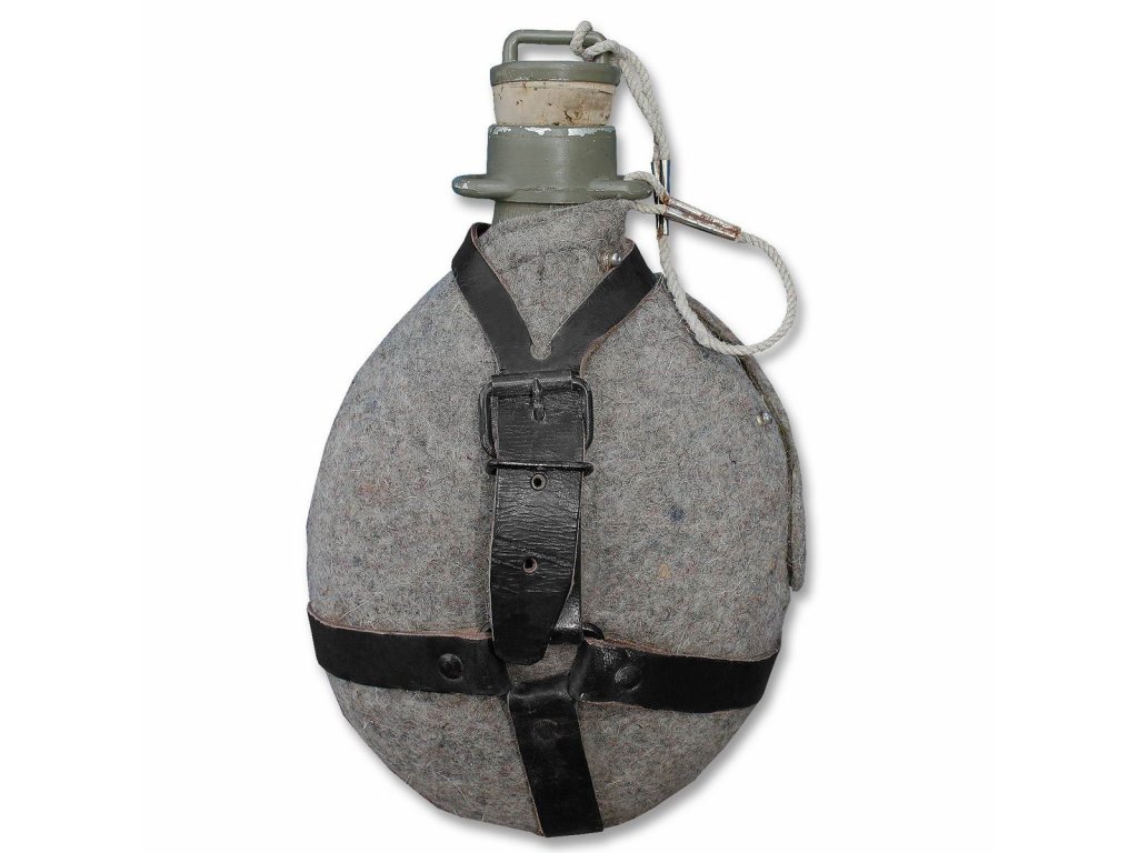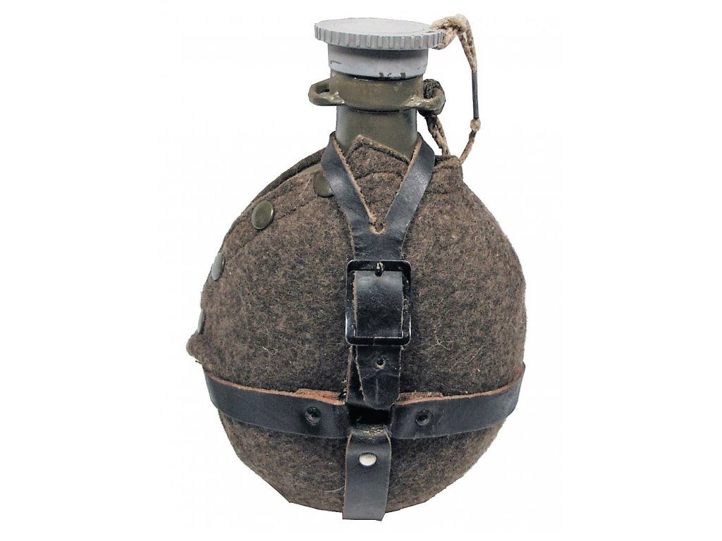 Polní láhev hliníková čutora s filcovým obalem a koženým řemínkem ČSLA/AČR originální