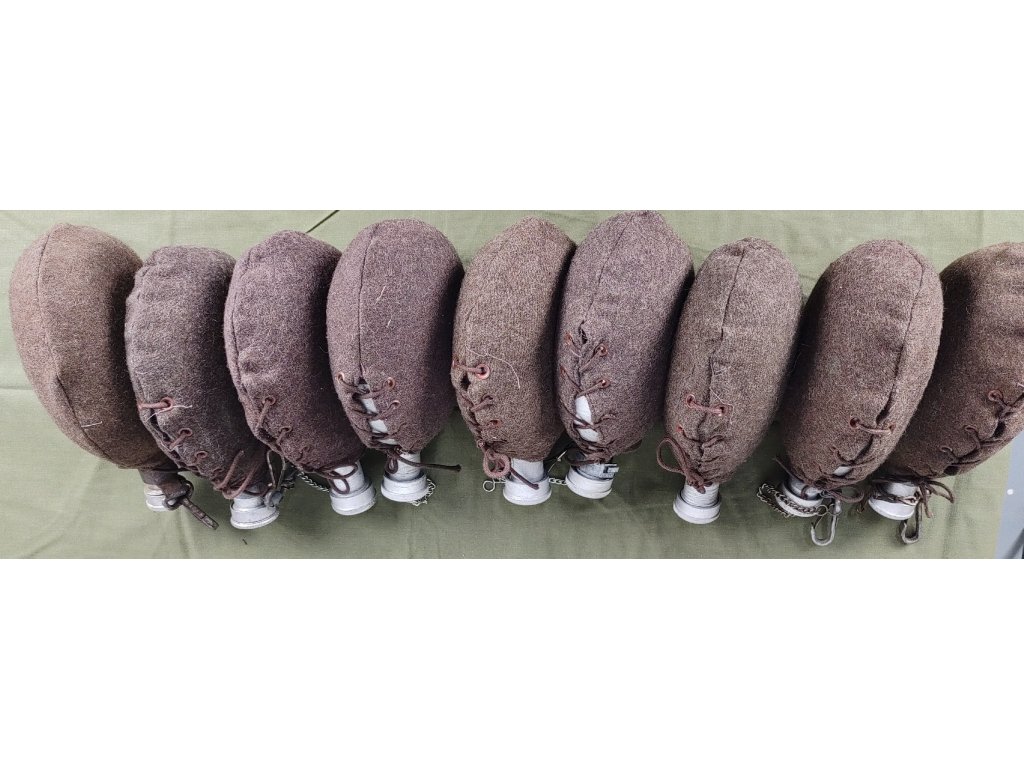 - Použité zboží (opotřebené vlivem užívání, těsnění uzávěru korkové nebo gumové, mohou mít drobné promáčkliny, převážně bez řetízku s karabinou, dobrý stav - před použitím je nutné čutoru vyčistit, viz. fotografie, vyřazené z armádních zásob).