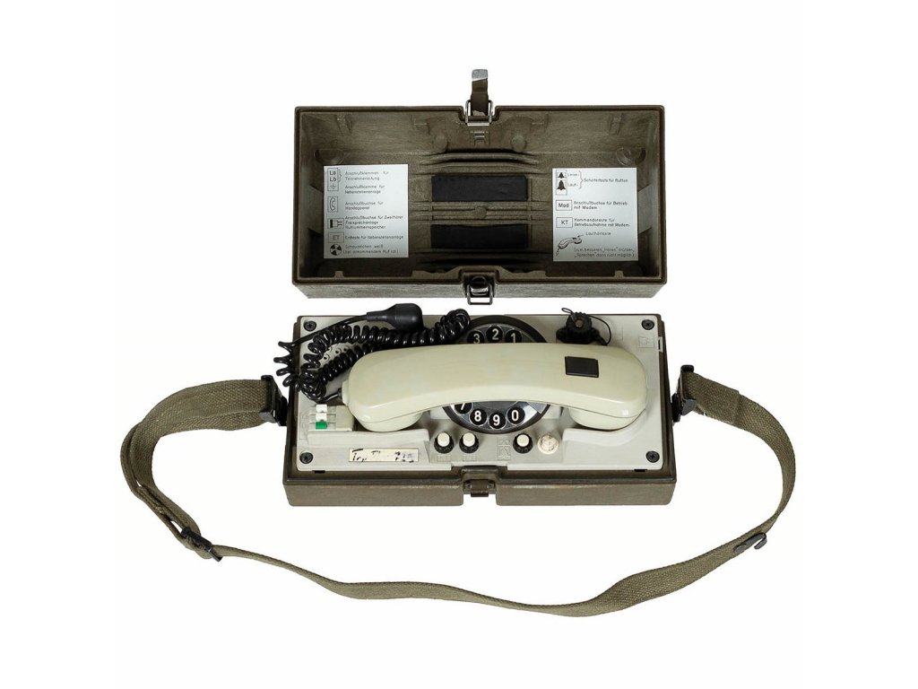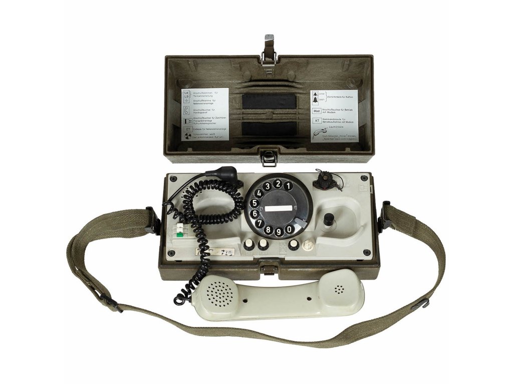 Německý polní telefon, který může ovládat kryptografickou jednotku,nebo se může používat jako normální analogový telefon.