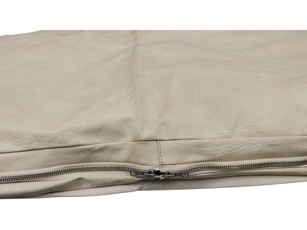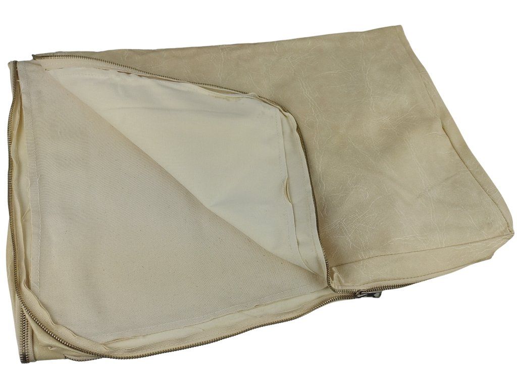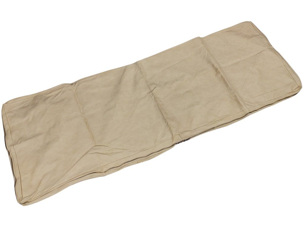 Koženkový potah na zdravotní matraci z přebytků nizozemské armády. vyroben z měkkého, koženkového materiálu, který má mírně texturovaný vzhled. Povlak má jednotnou, neutrální barvu, kterou lze popsat jako béžovou nebo světle krémovou. Materiál má snadnou údržbu. Zapínání pomocí dvou kovových zipů. Navržen pro matrace s délkou 185, šířkou 63 cm a výškou 8 cm.