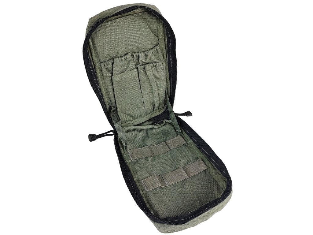 Vyrobeno z odolného materiálu CORDURA® a nabízí dlouhou životnost a odolnost proti poškození. Materiál je odolný vůči oděru, vodě, vlhkosti, znečištění a plísním. Připevnění pomocí systému MOLLE umožňuje rychlé připevnění a poskytuje stabilitu a bezpečnost. Kapsa se rozepíná pomocí dvoucestného robustního zipu, zatímco vnitřní popruhy a kapsy usnadňují organizaci a rozdělení vybavení. Přední prostor je opatřen univerzální vazbou MOLLE pro individuální přizpůsobení.