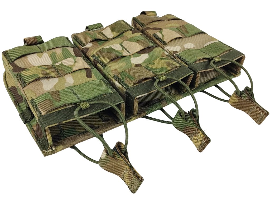 - Nízkoprofilové pouzdro na munici otevřené / Trojsumka na zásobníky s elastickými popruhy.