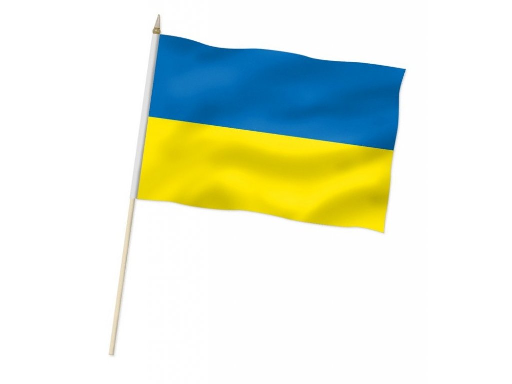 Praporek na dřevěné tyčce, ukončený plastovou koncovkou