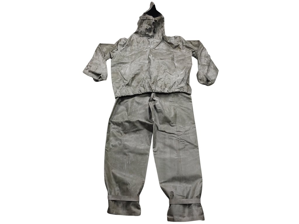 - Zánovní stav (obleky jsou nepoužité, dlouhodobě skladované v původních papírových boxech - balení není součástí, zakonzervované klouzkem proti přirozenému stárnutí materiálu, vyřazené z armádních zásob).