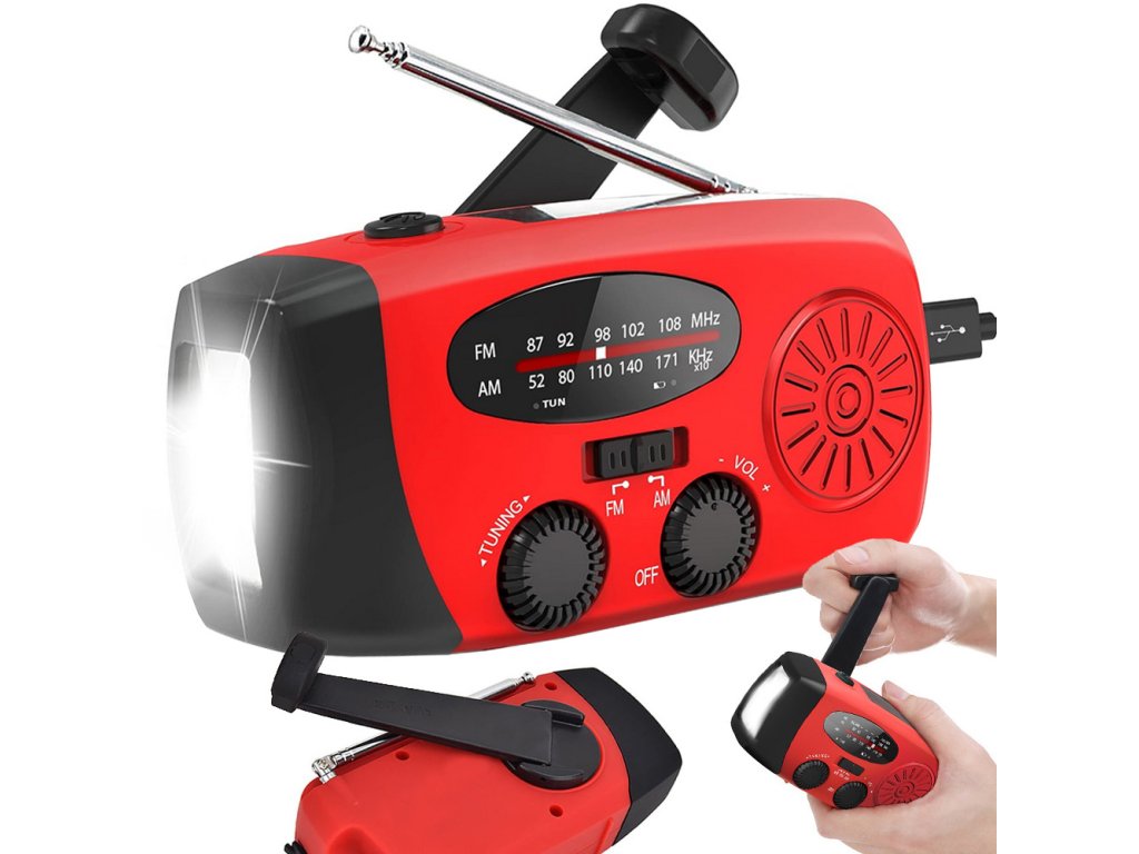 - Nouzový rádio s solárním napájením a ruční klikou 2000mAh/7400mWh AM/FM s 3 LED baterkami, moderní přenosný design pro nouzové situace, sněmové bouře a venkovní dobrodružství, kempingové vybavení | Moderní rádio | Odolná konstrukce