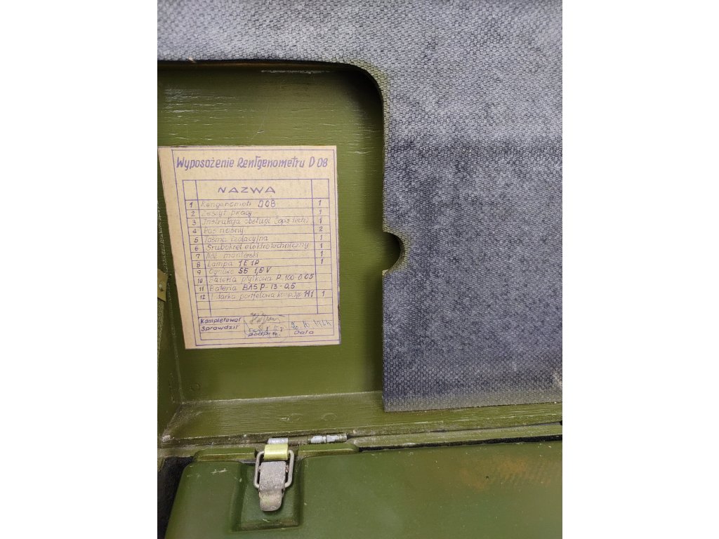 - součástí soupravy je rentgenometr D-08,popruh k rentgenometru,ruční svítilna a přepravní kufr