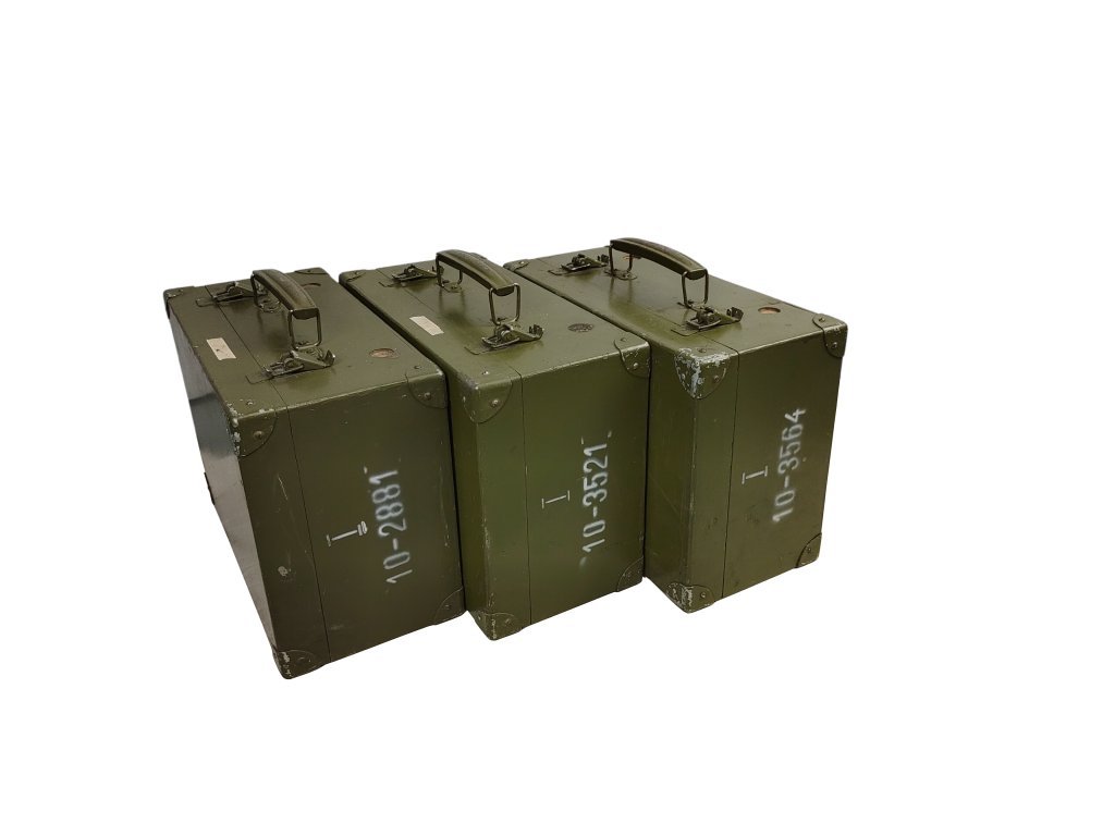 - nepoužité (vlivem dlouhodobého skladování dřevěné kufry odřené a zaprášené,bez záruky funkčnosti)