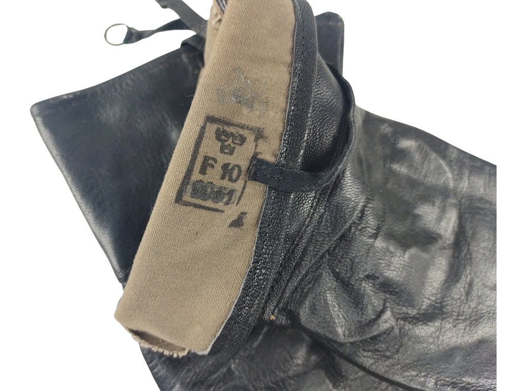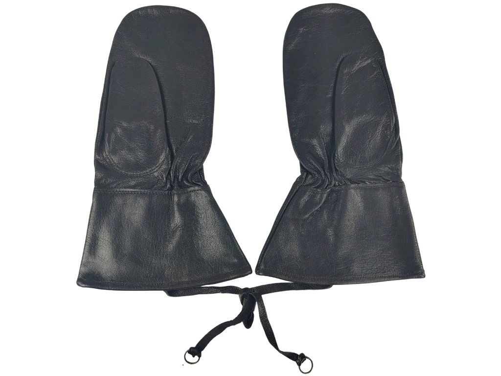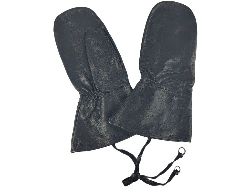 Originální černé kožené rukavice švédské armády z poloviny 20. století, včetně stylů podobných těm používaným v období druhé světové války (WWII.), jsou známé svou odolností a často nesou razítka „Tři koruny“ (Tre Kronor), které označuje švédský vojenský majetek.