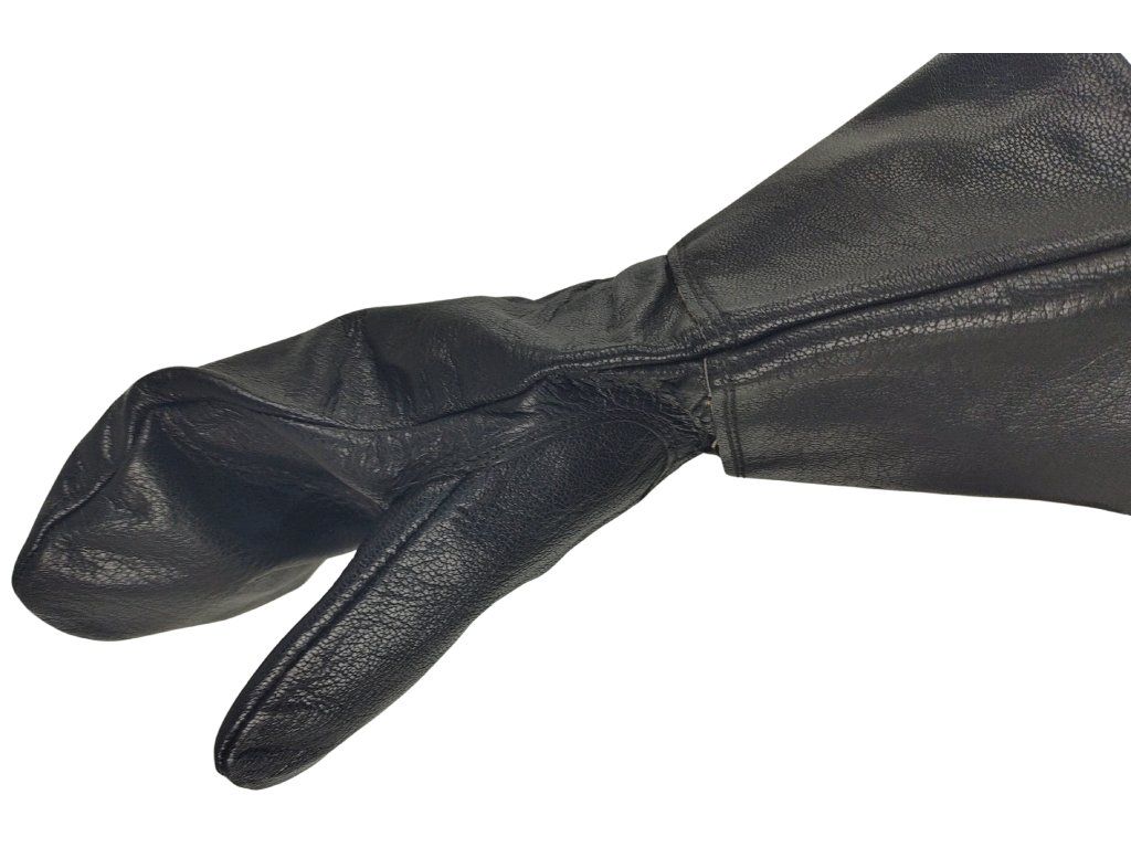 Jedná se o černé kožené palčáky s prodlouženou manžetou.