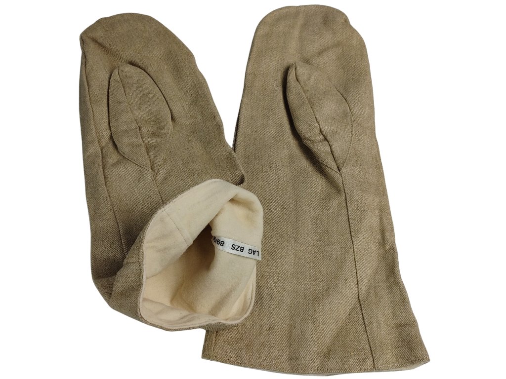 Originální švýcarské armádní zimní hřejivé palčáky, vyrobené z extra kvalitních a čistě přírodních materiálů. Vnější materiál rukavic je vyroben z tkaniny, která je složena z 50% lnu a 50% bavlny, vnitřní hřejivá podšívka s jemně česaným chlupem je ze 100% vlněného flanelu, extra hřejivého a velice příjemného na dotek. Nepoužité vojenské zásoby, pocházející z armádních přebytků švýcarské armády.